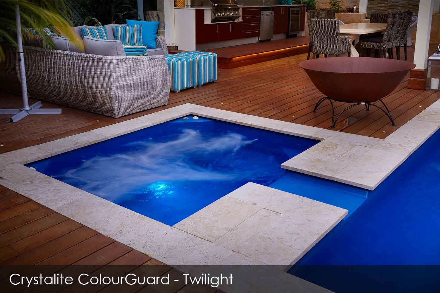 This revolutionary, world-first surface protection system is now patented in 27 countries and is backed by a Limited Lifetime Interior Surface Guarantee. It has superior UV and chemical resistance and is available in a stunning range of vivid colours never before seen on swimming pools. Beware of imitations, only Pool ColourGuard® can offer you the highest level of fade-resistance and unparalleled protection against the effects of UV rays and chemicals. It’s like sunscreen for your pool. We dare you to compare the benefits of Pool ColourGuard®.
