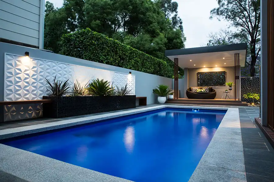 For a sleek, contemporary vibe, keep your landscaping simple with clean lines and a restrained plant palette. Think ornamental grasses, sculpted shrubs, and concrete or stone planters. Pair this with a smooth deck surface like polished concrete or porcelain tiles and add a few well-placed accent lights for a chic poolside look that feels like a modern spa.
